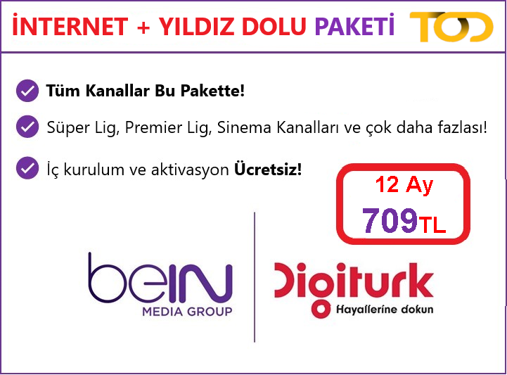 Kampanya kapsamında İnternetli Yıldız Dolu Paketi uydu ve 16 Mbps’ye kadar limitsiz internet 12 ay ayda 469 TL olarak sunulacaktır. Aktivasyon ve iç kurulum ücretsizdir.